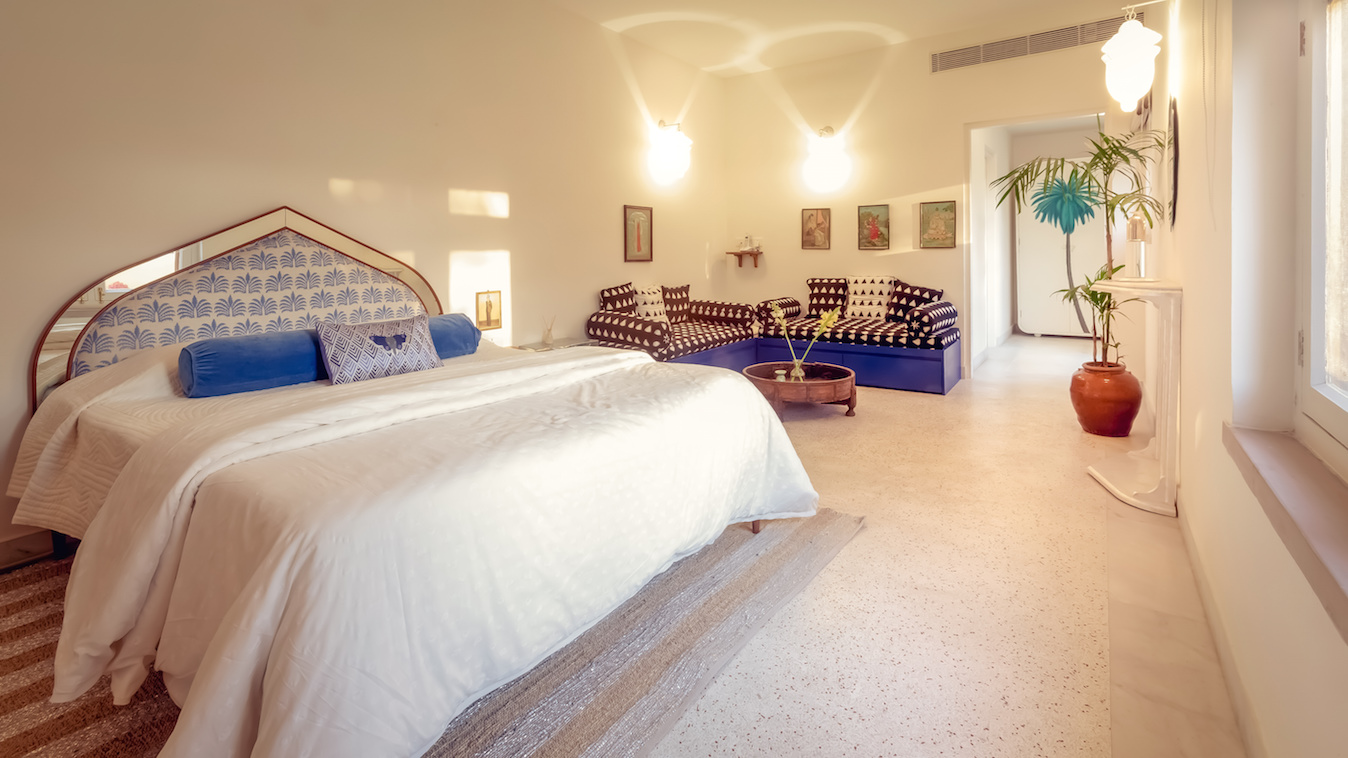 But it’s the design that really shines, and brighter than Gem Palace’s jewels (well, nearly). Guests can thank Lebanese-born, Jaipur-based designer Nur Kaoukji for Kothi’s clean, contemporary, and insanely elegant interiors. Choose from two suites, two doubles, and one single, all named after gemstones (but of course), all generously proportioned, soaked in natural light, and dotted around lush gardens and open courtyards that bring the outside in. The vibe is understated, but super-luxe, and it’s the cool detail that really sets this elevated bed and breakfast apart – think a handpainted mural wall in the library, or mattresses upholstered in Kaoukji’s own prints. Add in Ayurvedic massages, morning yoga sessions, farm-fresh meals and a rotating, seasonal menu, and suddenly there’s incentive to get to Rajasthan even in this silly heat.