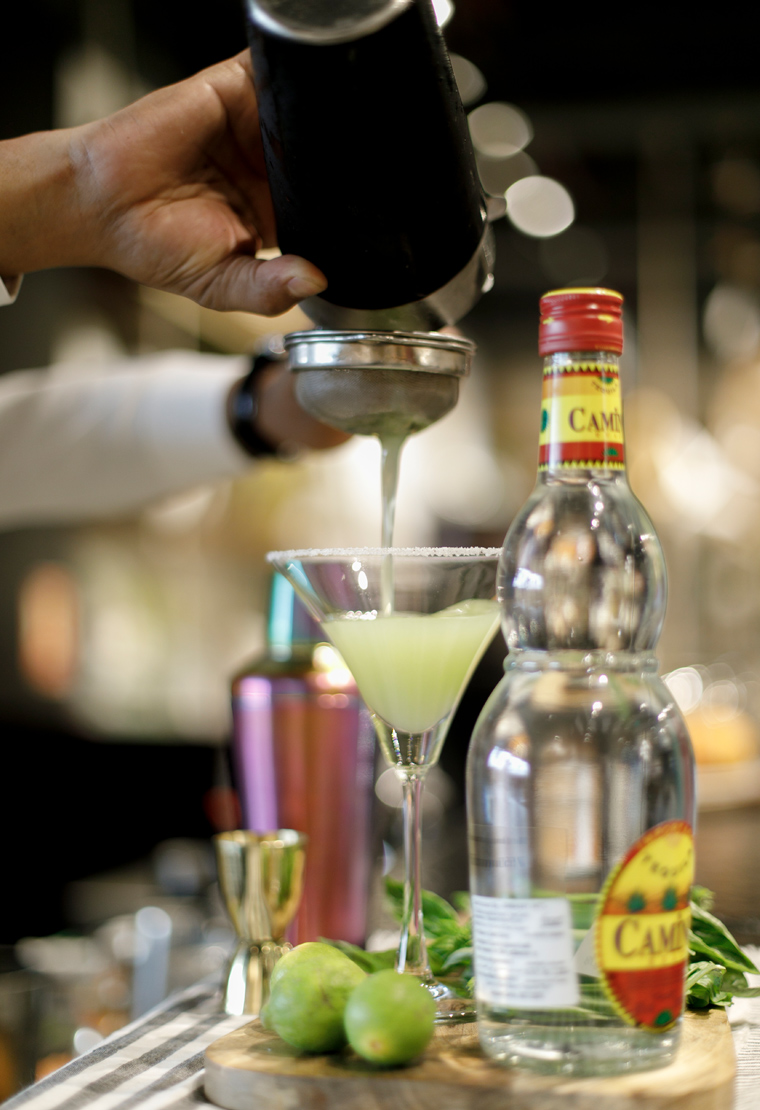 - Muddle basil, lemon juice and Cointreau with tequila.