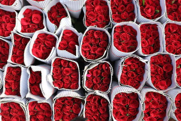 Once home, trim an inch off the bottom of your flowers and cut the ends at an angle under running water. This helps them retain as much water as possible (and last as long as possible!). Plus trim away excess leaves and place them in cool water in which you dissolve a bit of aspirin or sugar; this prevents oxidising. If you’ve bought blooms as a present for someone, make sure you store the flower someplace cool or near an air conditioner to stop them from wilting.