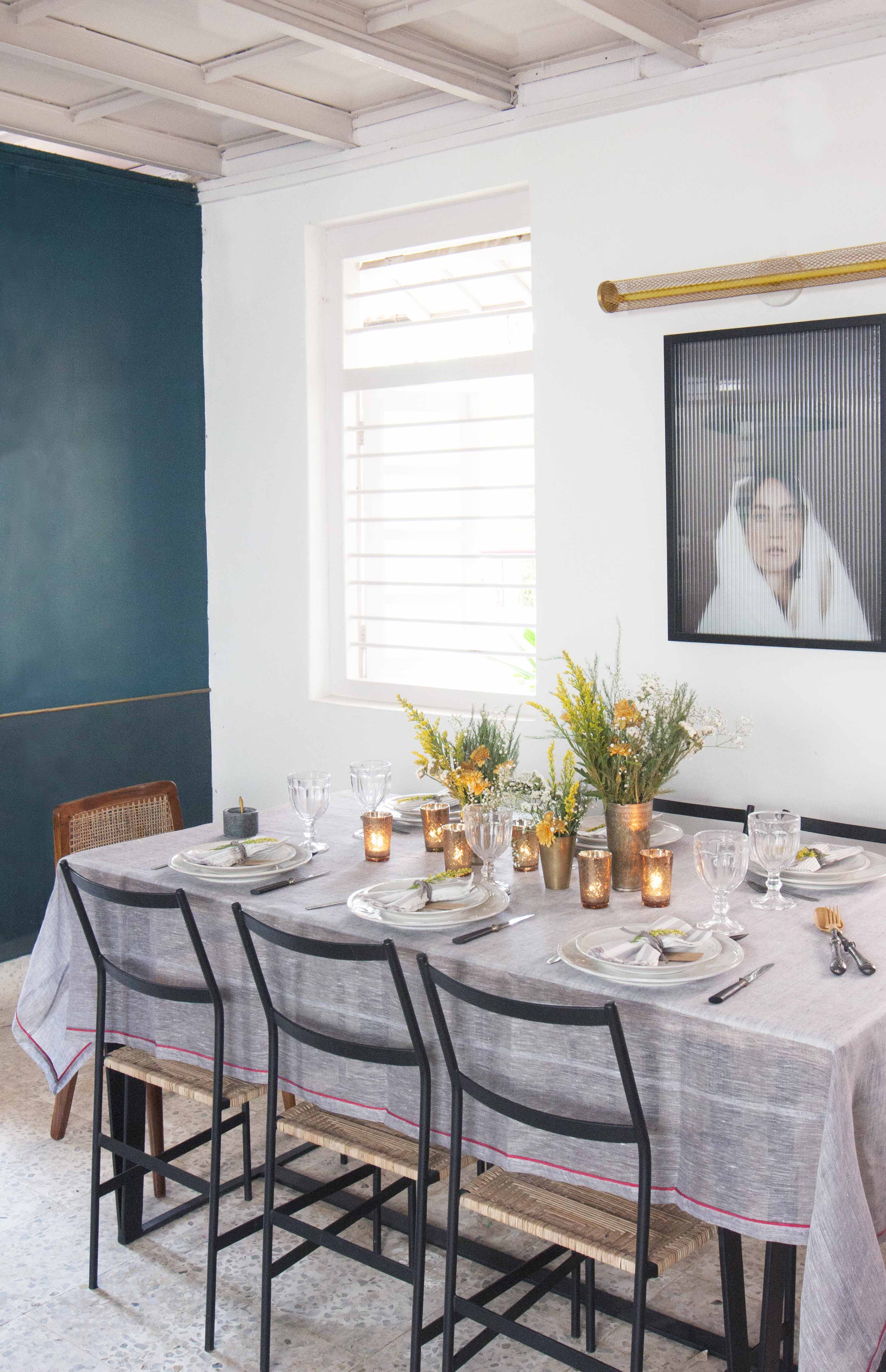 Nicobar is a really fresh and modern brand, and it ties in beautifully with our idea of travel. We particularly love your light colours and materials. To us, Nicobar’s aesthetic is simplicity, lightness, and sharing peaceful moments at a meal around the table, which so closely mirrors our own aesthetic. We love cooking and styling, so we wanted to stage (or set) your product in our interior.