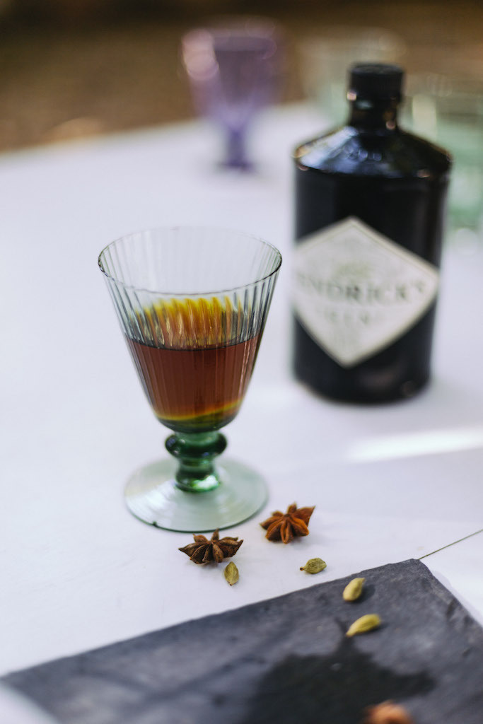 We’re channeling Getafix’s concocting skills (and unbridled good nature) with potions of our own, mixed up outdoors in the sunshine, using generous splashes of Hendrick’s Gin (a classic and a favourite). Our first go takes our other longstanding drink, chai, and pimps it until it goes from a morning staple to a midnight must-have