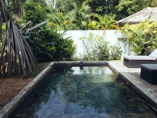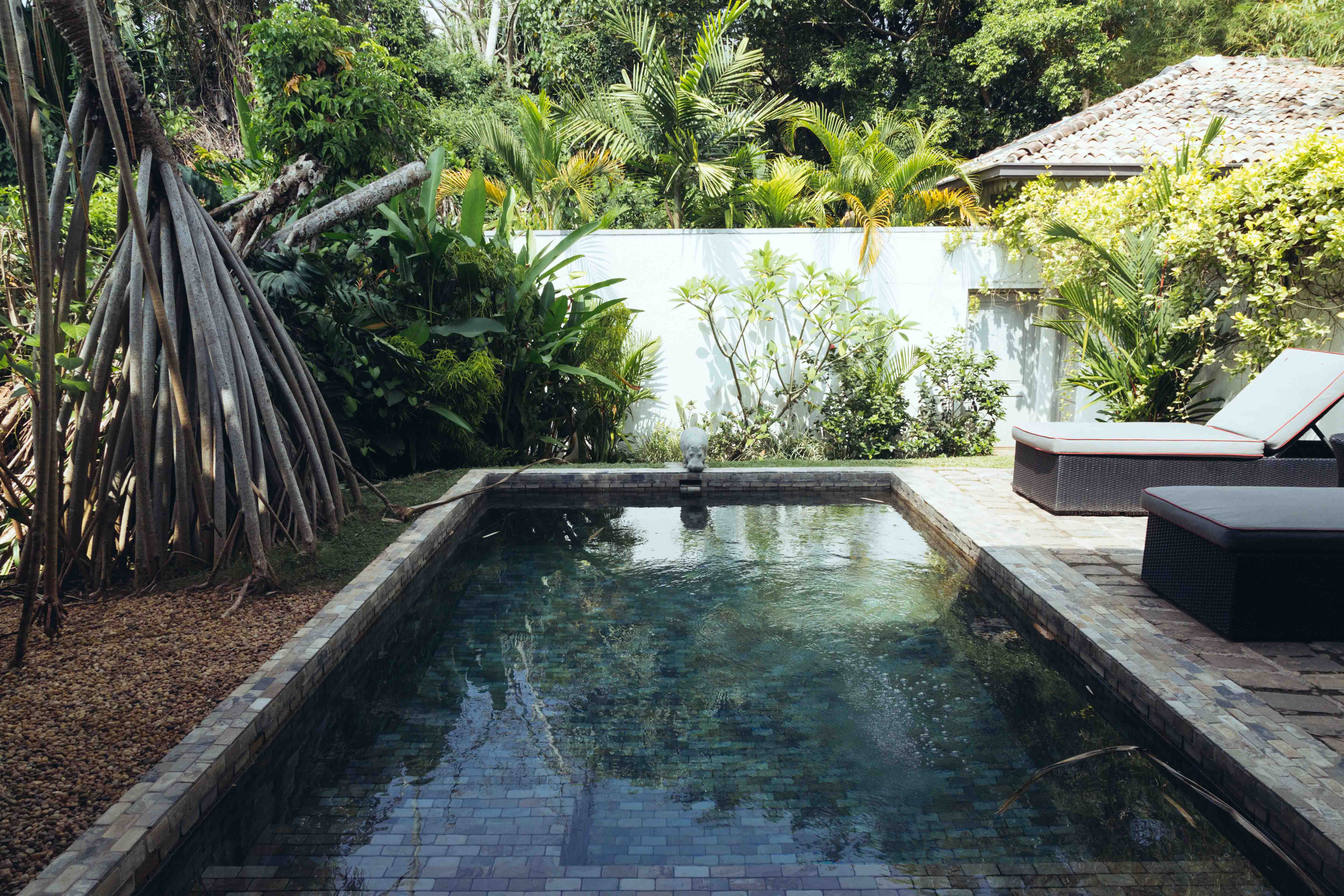 Even if you have plans to explore in and around the property, the gardens and pool encourage you to linger. In all of the 17 airy and well-designed rooms, you’ll find chic stripe, crisp cotton, and dark wood, a well-considered tropical modern oasis.