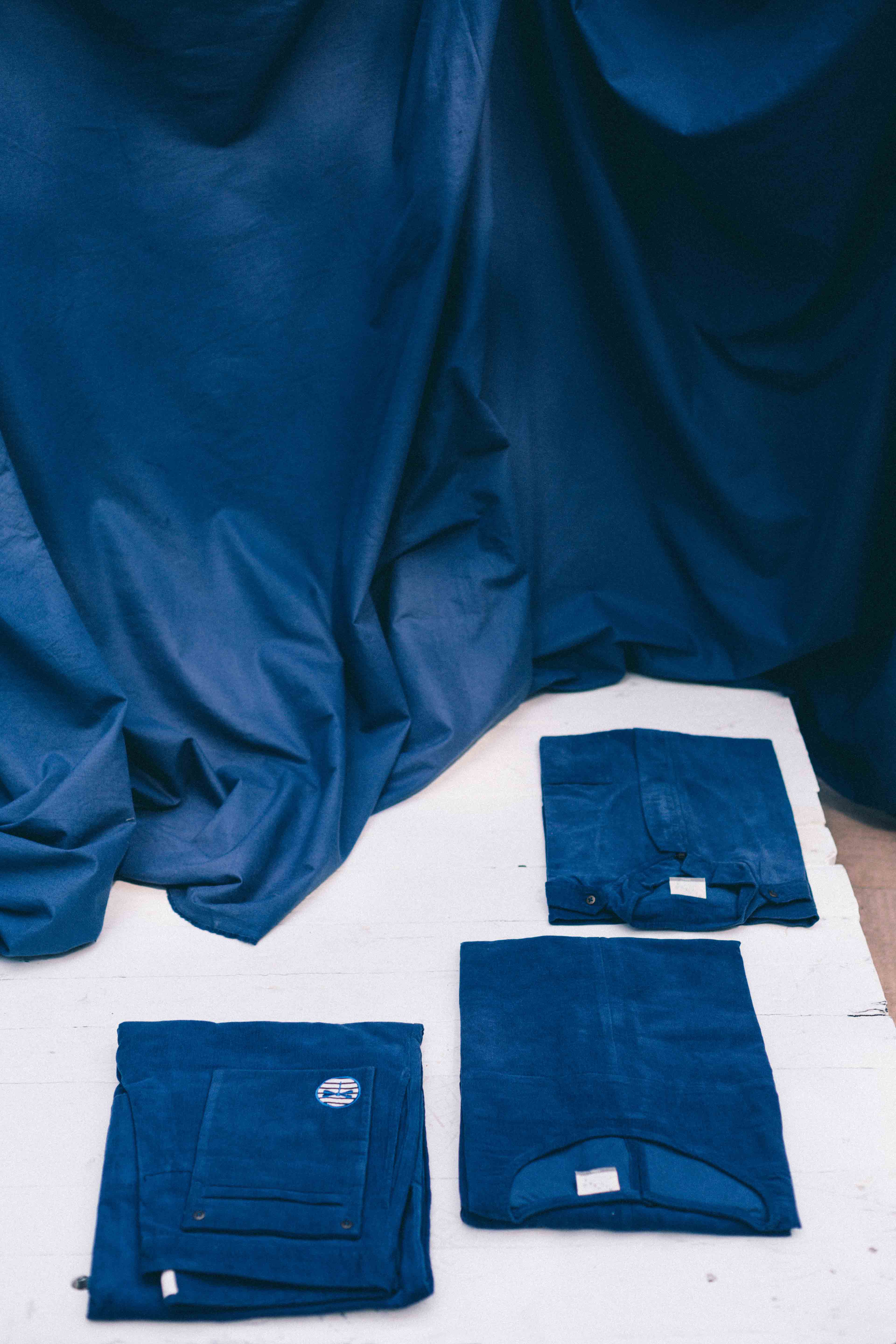 Our deep indigo denim or the softer pastel hue is the outcome of an exacting dip-dyeing process and the number of dips the fabric receives. The resulting boldness or hi-lo fade of the denim depends on the number of washes the fabric receives thereafter.