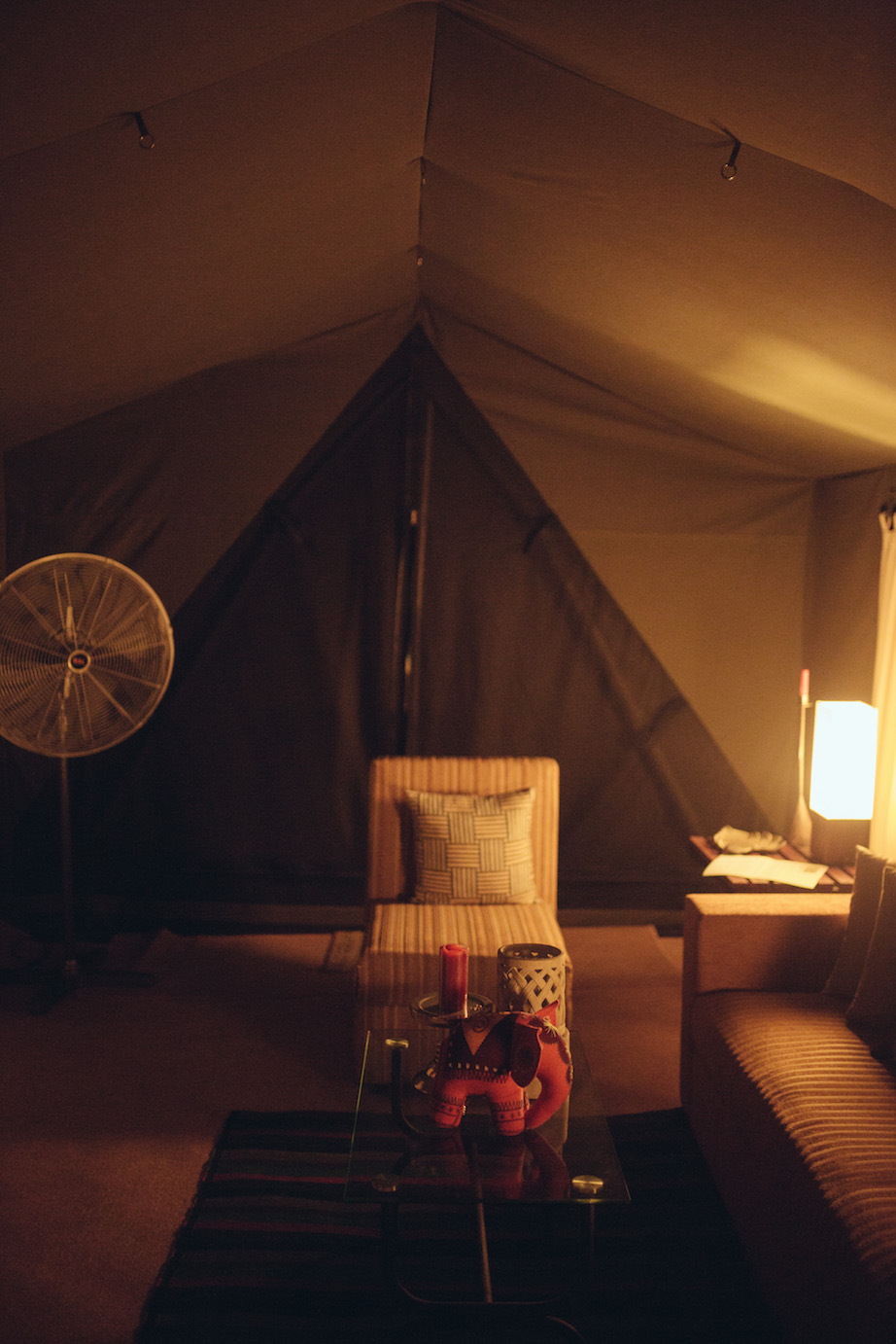We wake at the crack of dawn for our safari, surprisingly perky thanks to the sort of deep sleep that’s only possible out in the wild (even though it’s pretty hard to call it the wild when you’re cocooned in a fabulous tent and your cellphone is plugged into a wall to charge). We’re surrounded by wildlife and nature–the campsite is seven kilometres from the Wilpattu National Park’s entrance and just 500 metres from the park’s boundary–and while we were told that the region was in the throes of a two-year drought, we seemed to have brought a little splash of unseasonal rain with us and it was cool and crisp as we set off that morning.
